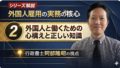 外国人雇用 企業の受入れ、定着、離職、在留資格との関係など、現場で起きる実務上の論点を扱います。